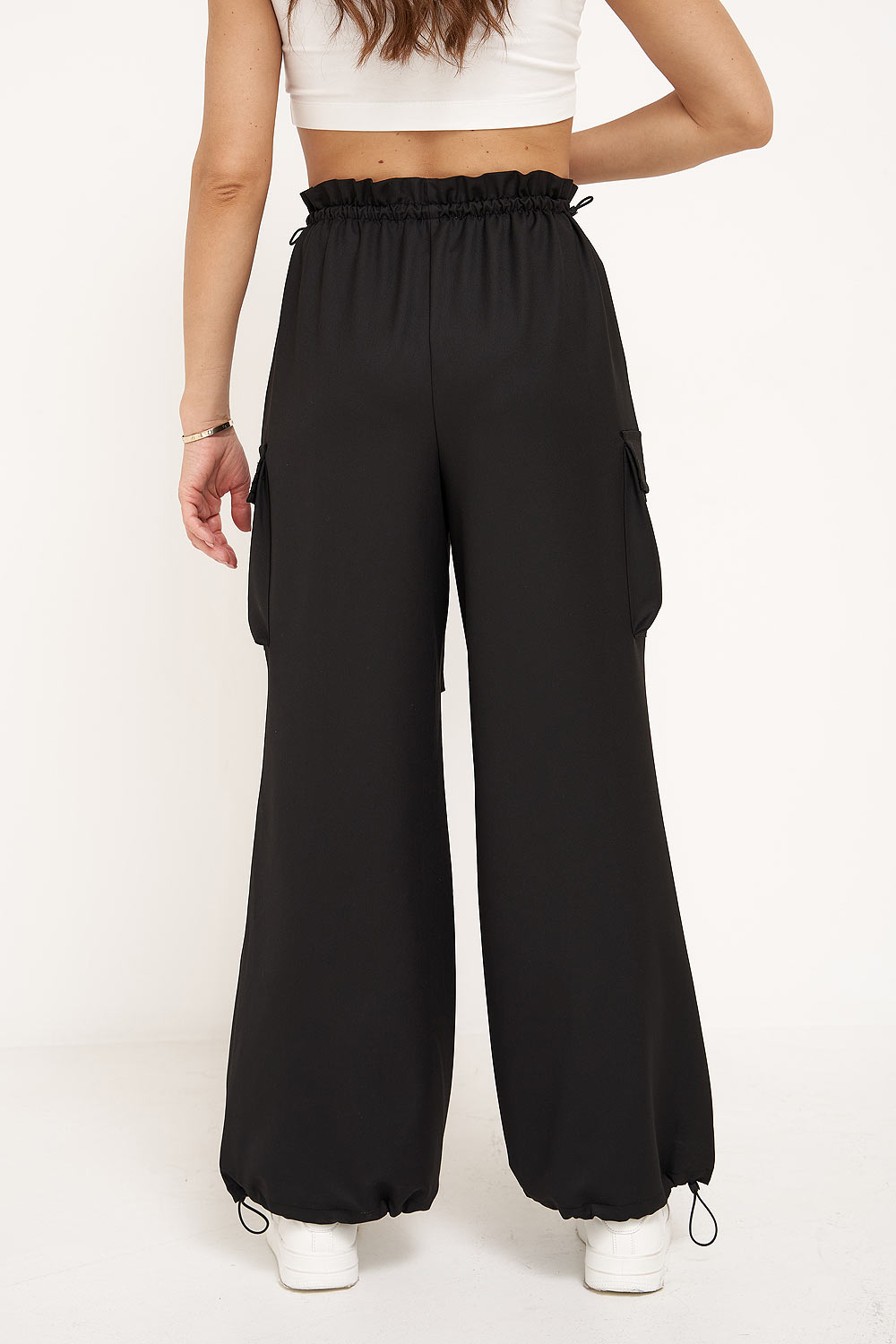 Брюки карго из облегченной поливискозы. Ткань имеет лёгкую струящуюся ткань с минимальной сминаемостью. Благодаря регулирующийся резинке на поясе, можно обеспечить комфортную посадку для девушек с разным типом фигуры.