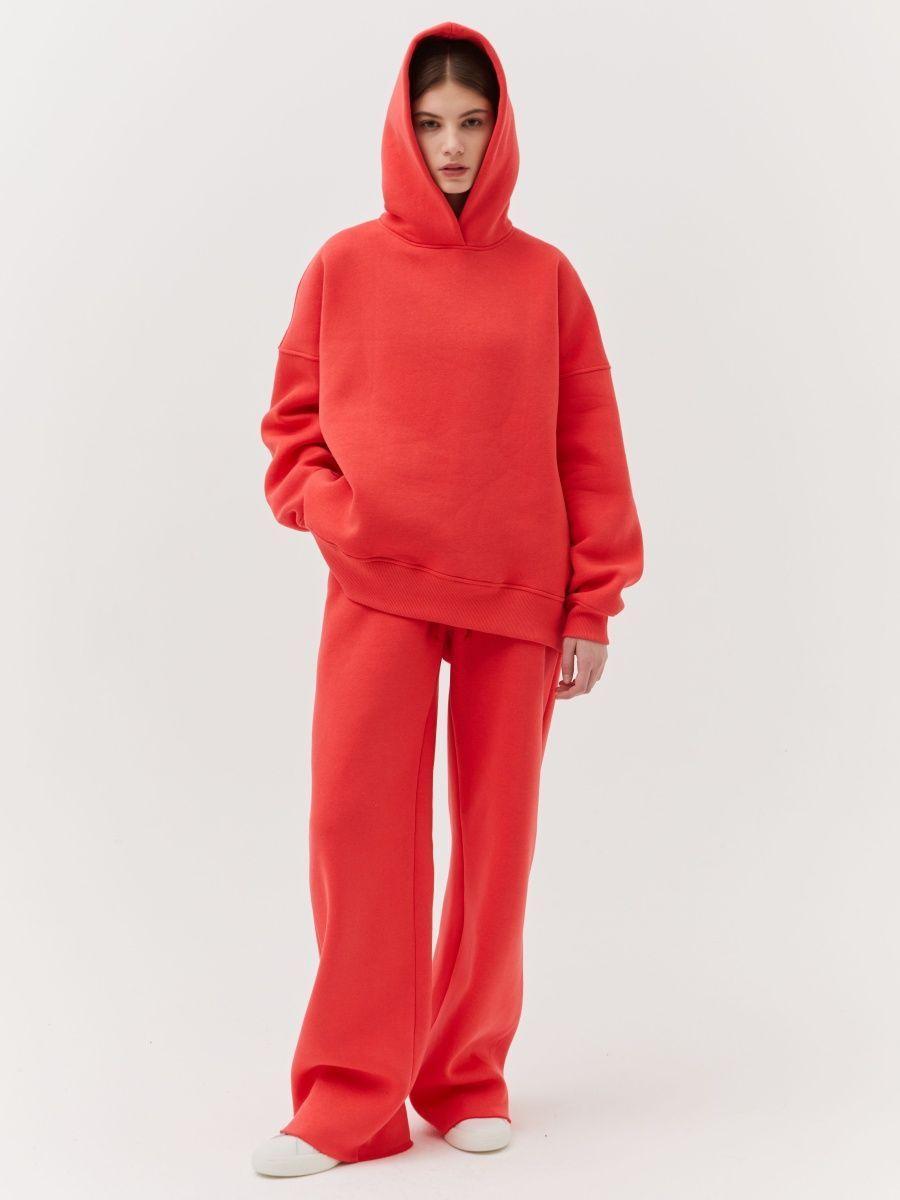 Палаццо из футера-трехнитки с начесом цвета коралл.
