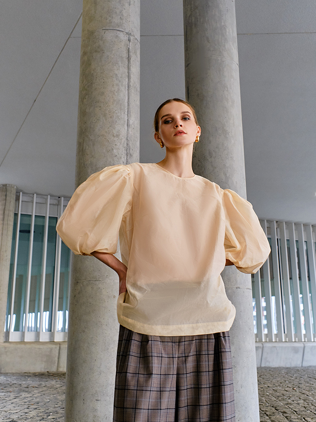 Широкие прямые клетчатые брюки из шерстесодержащей костюмной ткани. Посадка на 4 см ниже талии, есть шлевки для ремня. На поясе по две складки с каждой стороны. Застёжка молния, потайной крючок, боковые карманы. Сзади один прорезной карман в рамку с диагональным рисунком. За счет идеальной состыковки рисунка клетки боковых швов практически не видно. В наличии три размера: S,M и L. Гамма рисунка: бежево-голубая. Размер L: ОТ-86, ОБ-128, высота сидения - 28, обхват ноги - 76, длина изделия - 107.