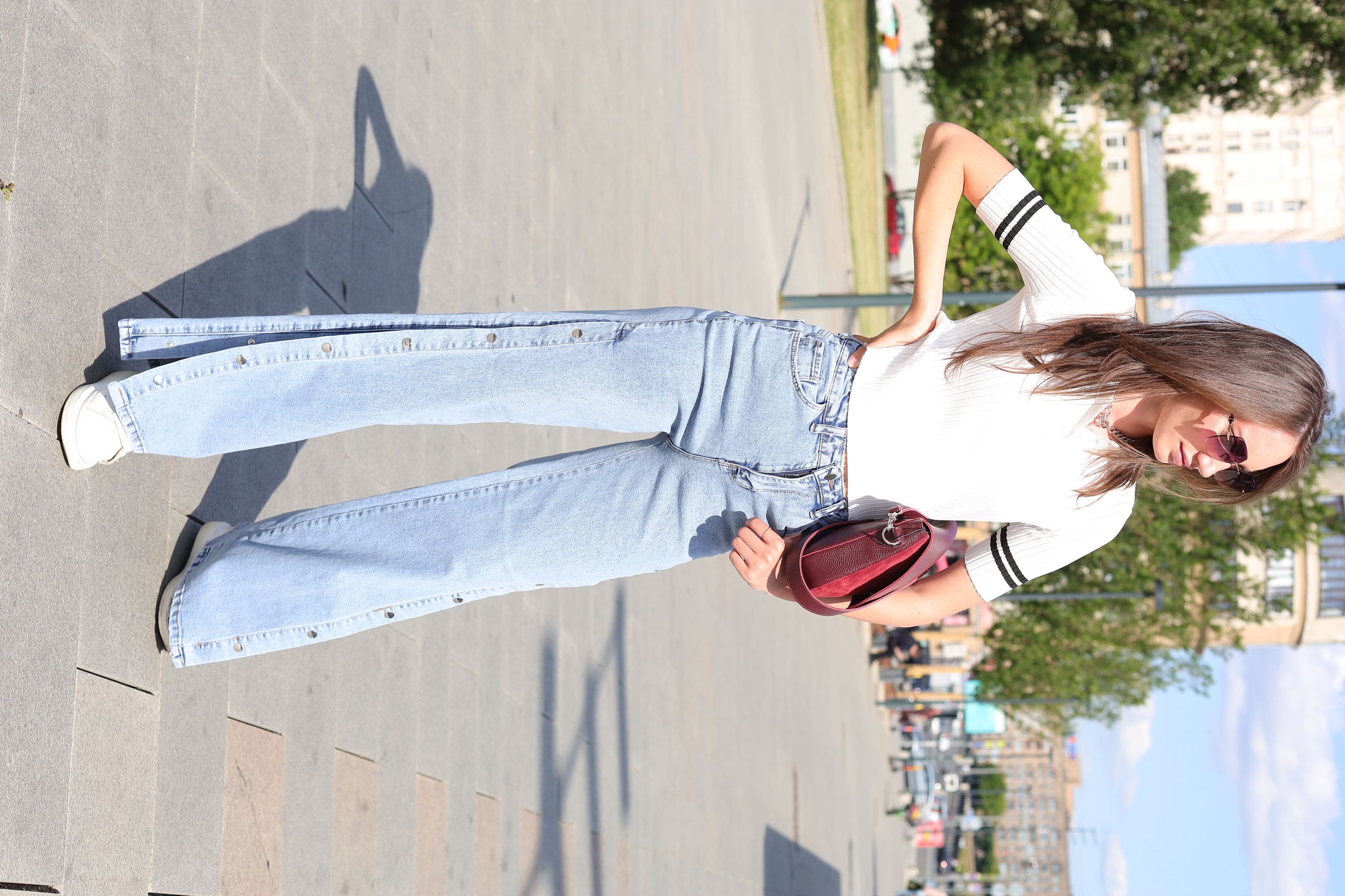 Джинсы с разрезом и высокой посадкой выполнены из натурального хлопка. Благодаря высокой посадке модель подчеркивает талию и прекрасно смотрится на любой фигуре. Абсолютно универсальны и сочетаются практически с любой одеждой: топом, базовой футболкой, жакетом.