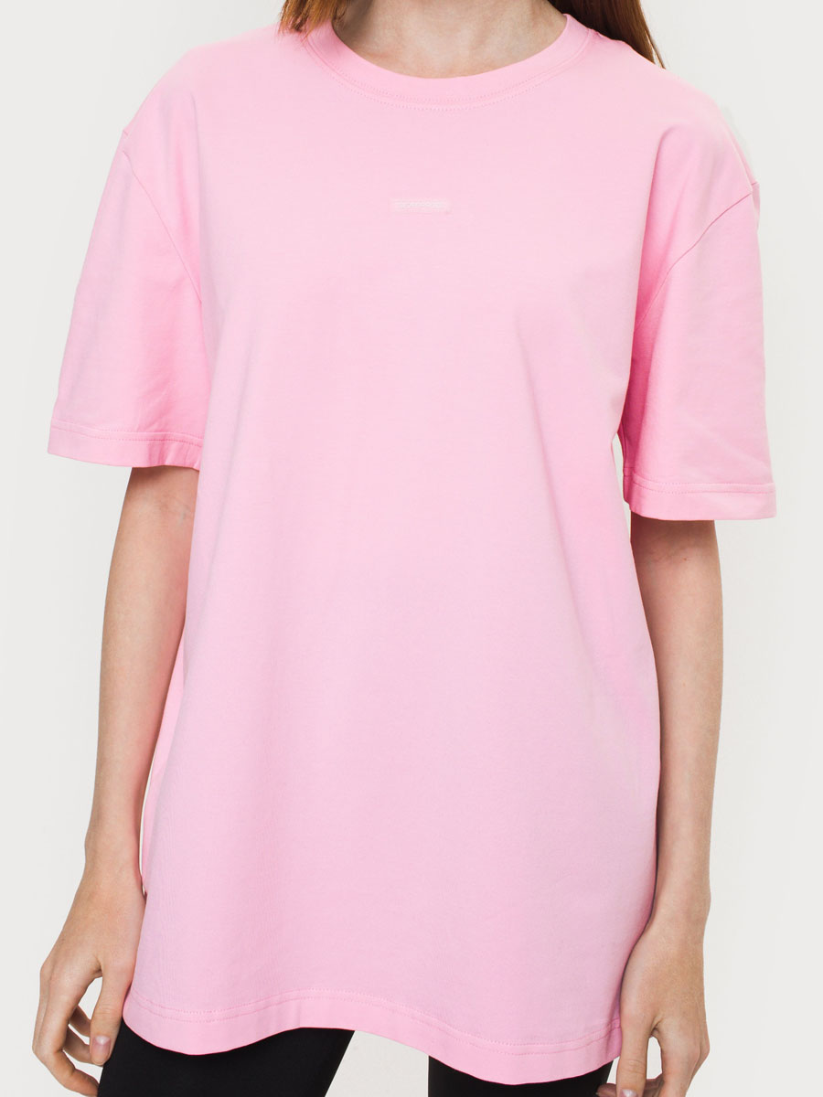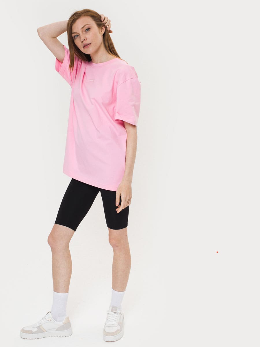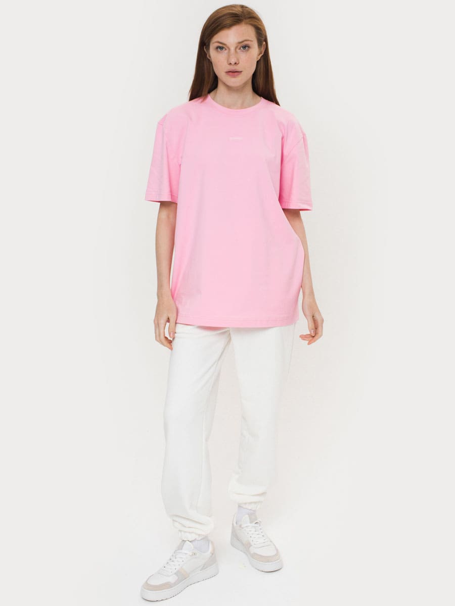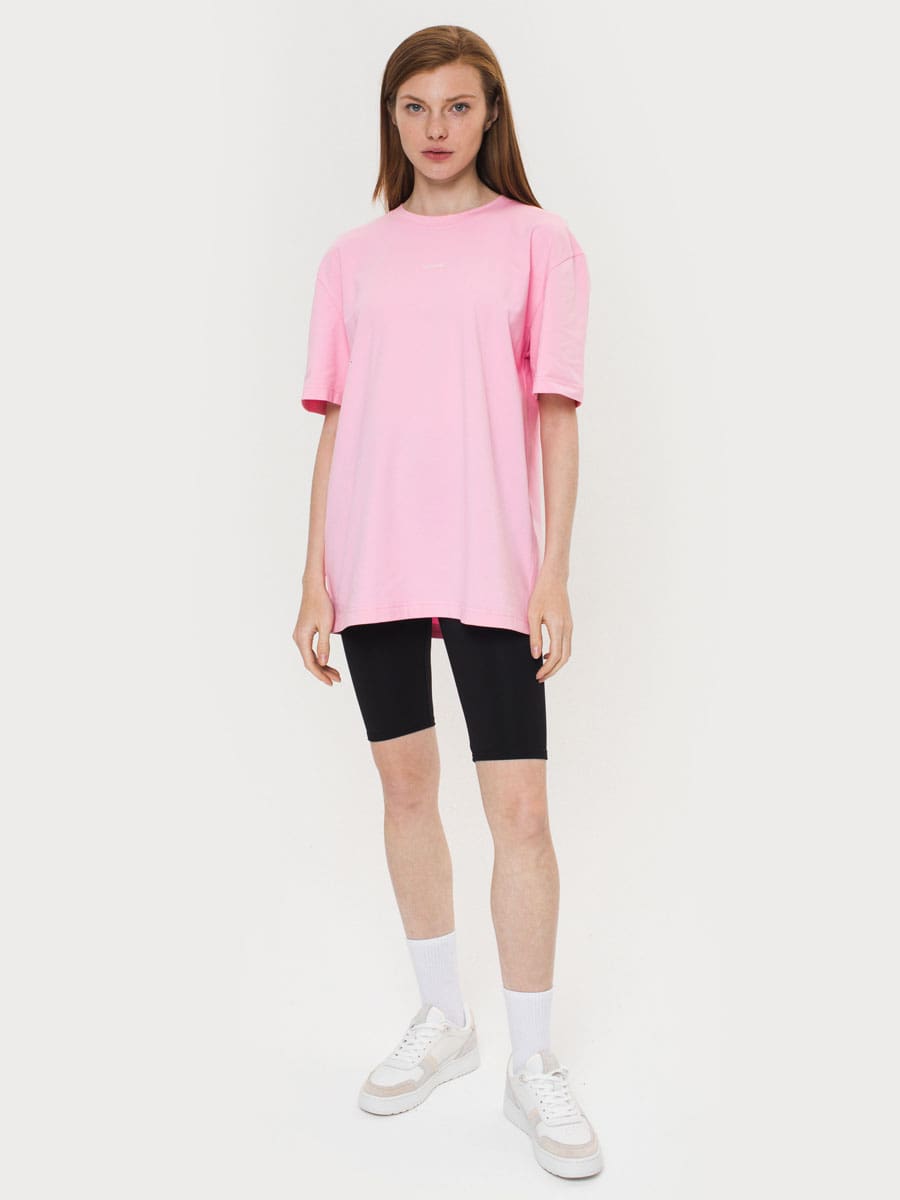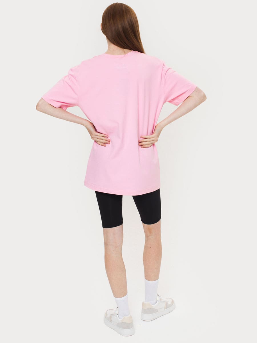 Рекомендации по уходу за футболкой оверсайз розовой: стирка на деликатных режимах при температуре не выше 30 градусов с одеждой подобного цвета, отжим на невысоких оборотах.