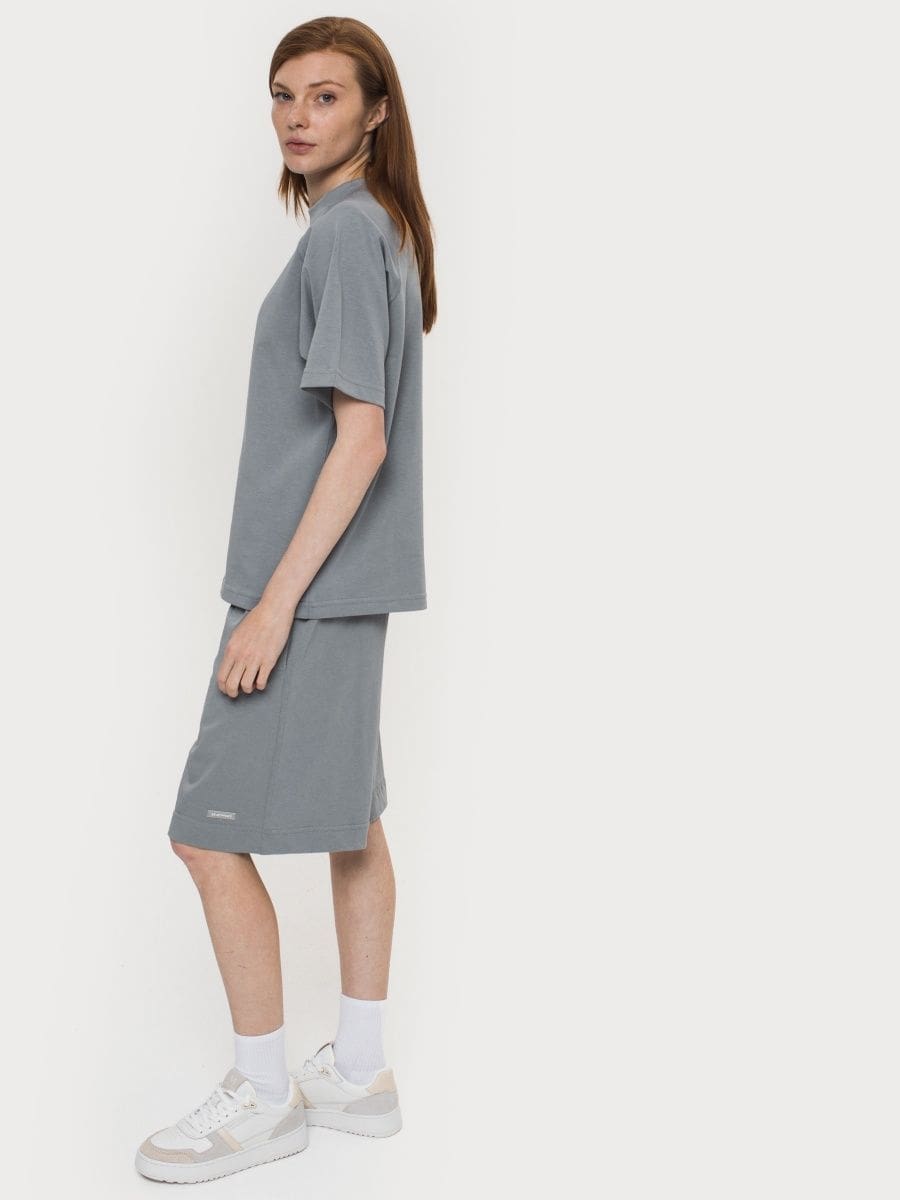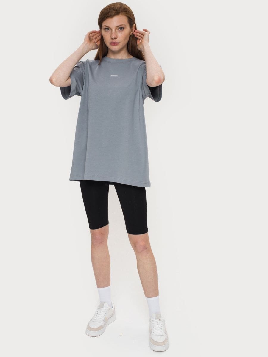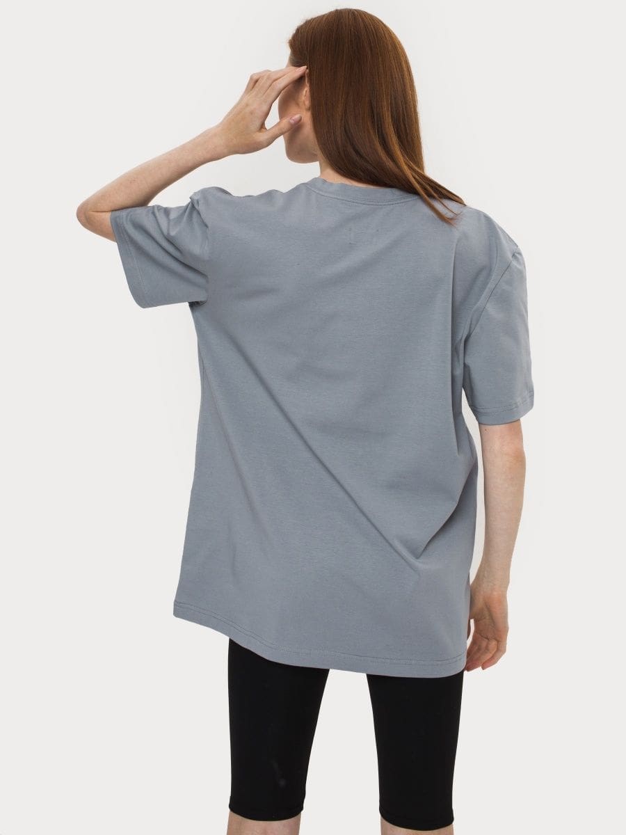 Футболка оверсайз серая женская сшита из плотной хлопковой ткани. Футболка женская оверсайз может быть самостоятельным предметом вашего гардероба или компоноваться с брюками палаццо. Такой костюм подарит свободу движений и придаст силуэту стройность.