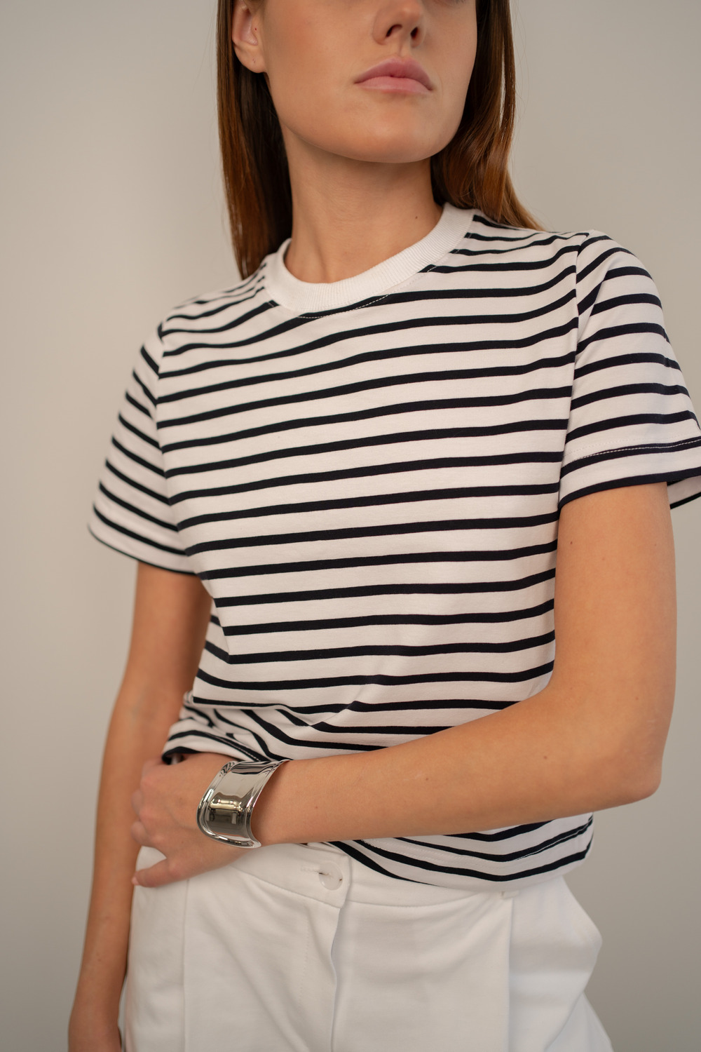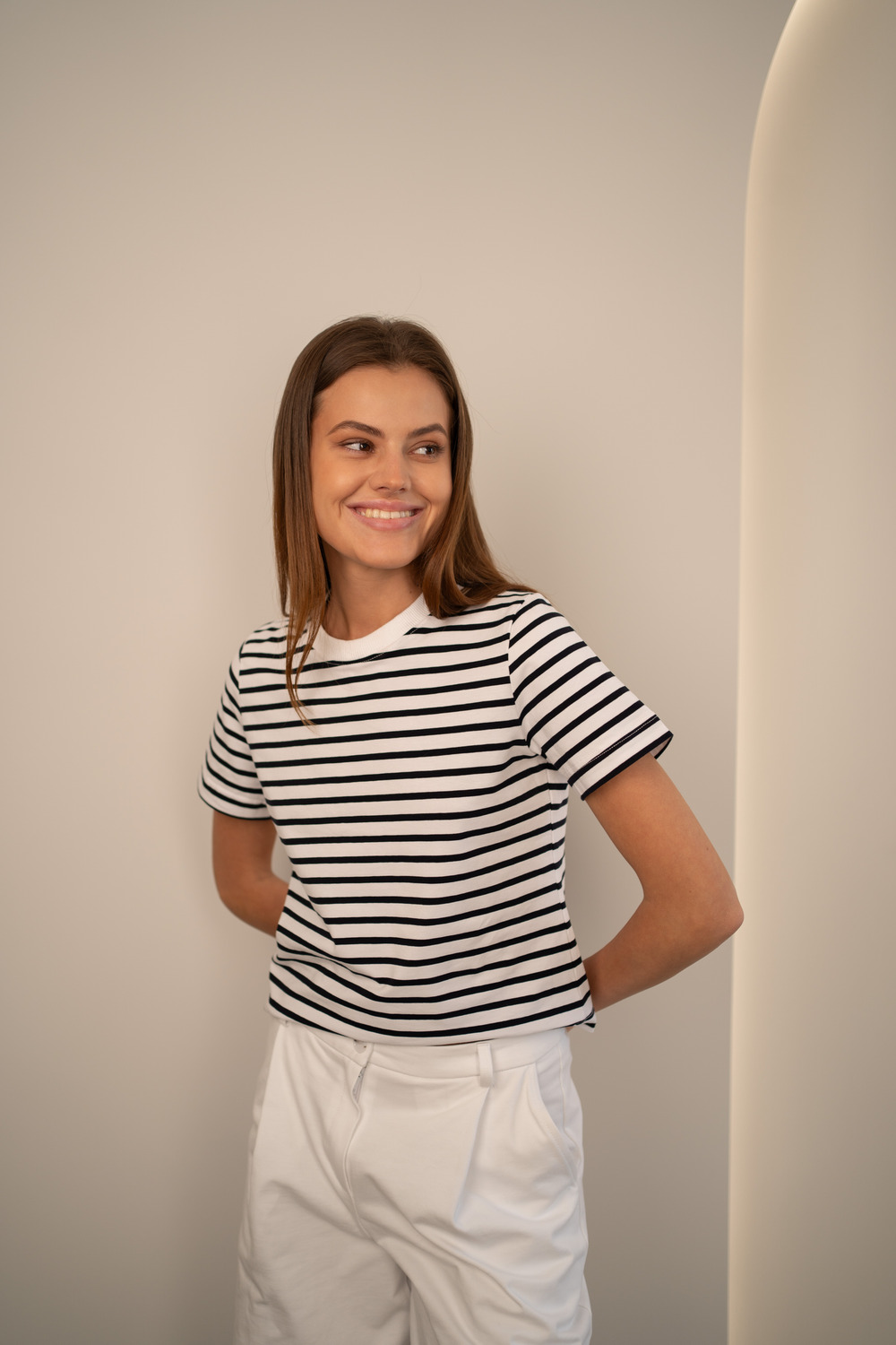 Футболка в узкую полоску.
