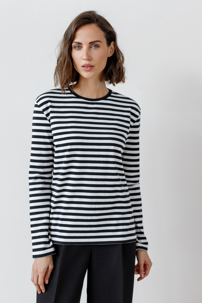 Тельняшка в черную полоску с черным воротом Обмеры XS: Обхват груди 96, Обхват бедер 96, Длина рукава 57, Длина изделия 63 Обмеры S: Обхват груди 98, Обхват бедер 98, Длина рукава 58, Длина изделия 64 Обмеры М: Обхват груди 110, Обхват бедер 110, Длина рукава 58, Длина изделия 65 Обмеры L: Обхват груди 112, Обхват бедер 112, Длина рукава 59, Длина изделия 66 Обмеры XL: Обхват груди 116, Обхват бедер 116, Длина рукава 60, Длина изделия 68 Параметры модели: 176/87/62/89,5 На модели размер S