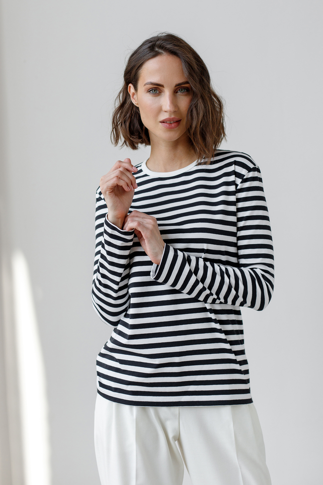 Тельняшка в черную полоску с белым воротом Обмеры XS: Обхват груди 96, Обхват бедер 96, Длина рукава 57, Длина изделия 63 Обмеры S: Обхват груди 98, Обхват бедер 98, Длина рукава 58, Длина изделия 64 Обмеры М: Обхват груди 110, Обхват бедер 110, Длина рукава 58, Длина изделия 65 Обмеры L: Обхват груди 112, Обхват бедер 112, Длина рукава 59, Длина изделия 66 Обмеры XL: Обхват груди 116, Обхват бедер 116, Длина рукава 60, Длина изделия 68 Параметры модели: 176/87/62/89,5 На модели размер S