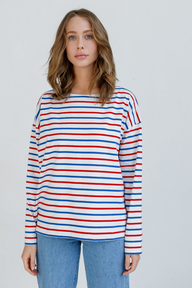 Тельняшка со спущенным плечом и вырезом лодочка Обмеры s-m: Ширина 54см, Длина 60см, Длина рукава 65см. Обмеры m-l: Ширина 56см, Длина 60см, Длина рукава 68см Параметры модели: 172/88/64/88 На модели размер S