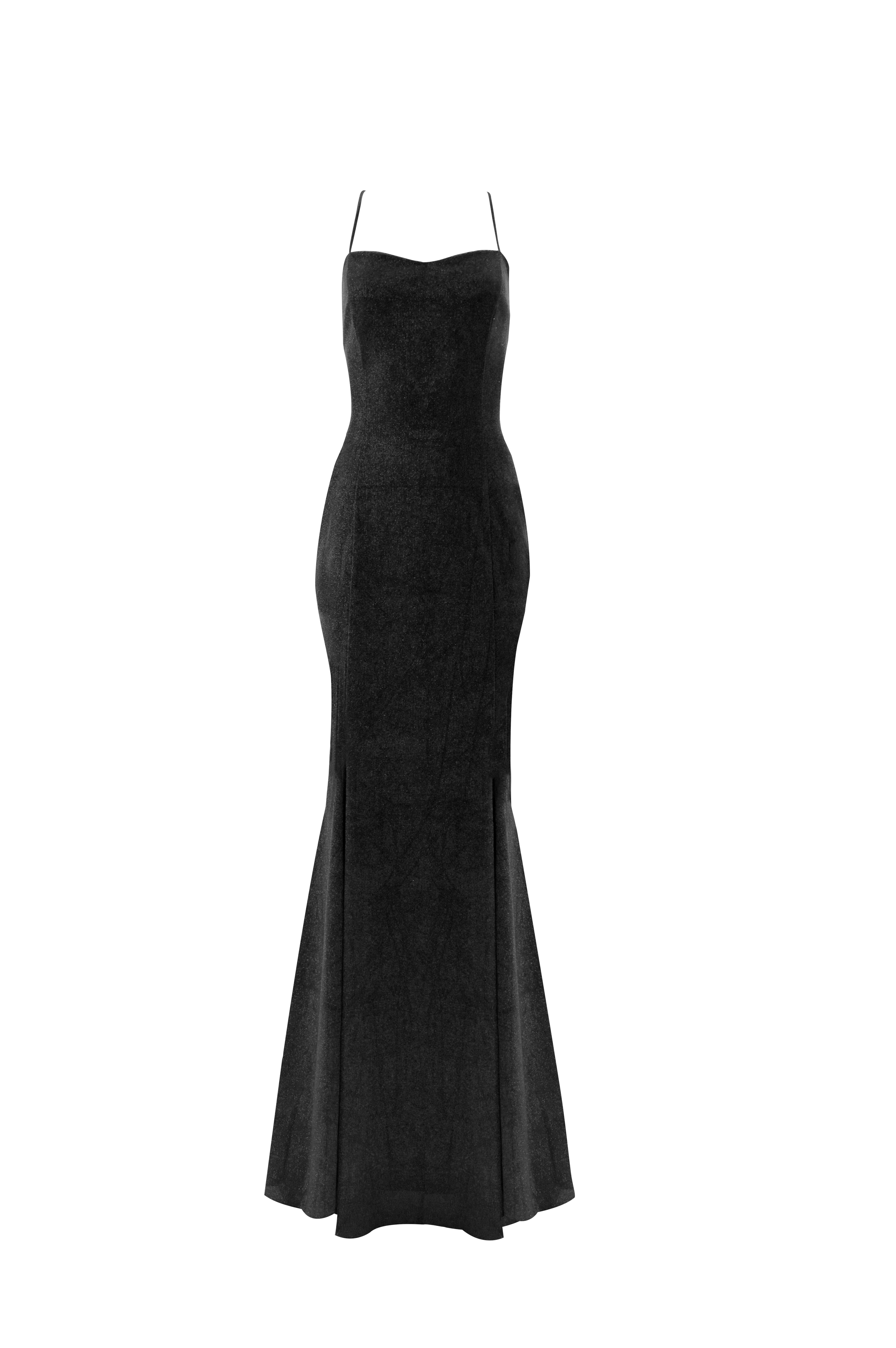 Мерцающее платье модель Kim. Платье выполнено из мерцающей ткани, длинный шлейф.