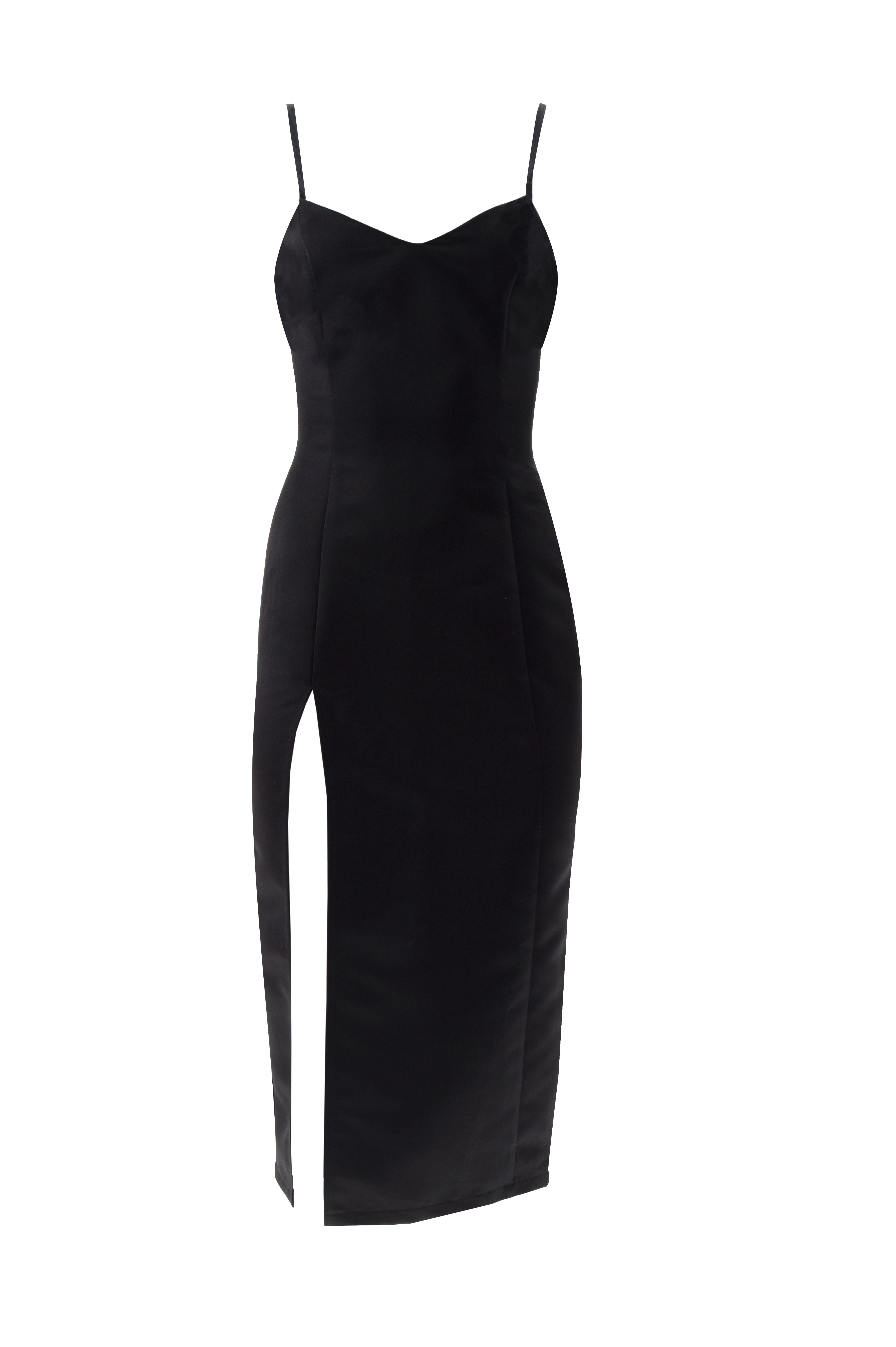 Платье Lesli c шикарным декольте и разрезом от бедра. Выполнено из плотной корсетной ткани.