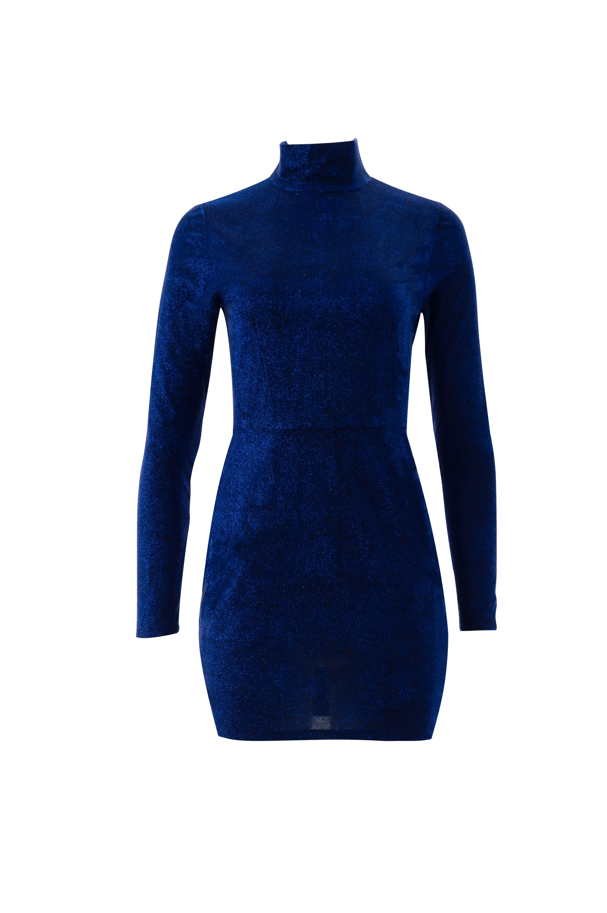 Укороченное платье на бретелях модель Blash темно-синего цвета с разрезом от бедра. Выполнено из плотной атласной ткани.