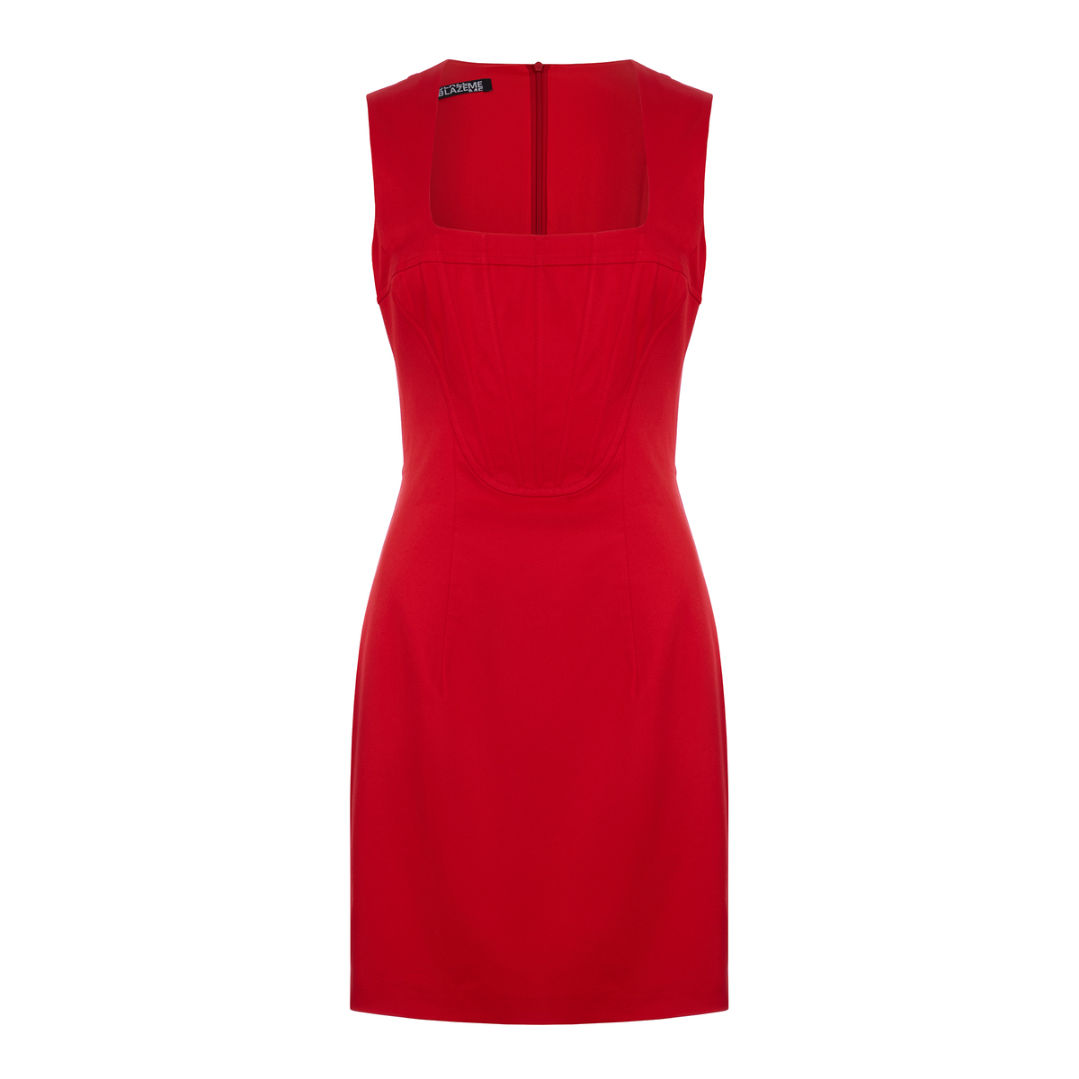 Корсетное платье с подкладом в красном цвете. Застежка на спине с потайной молнией.