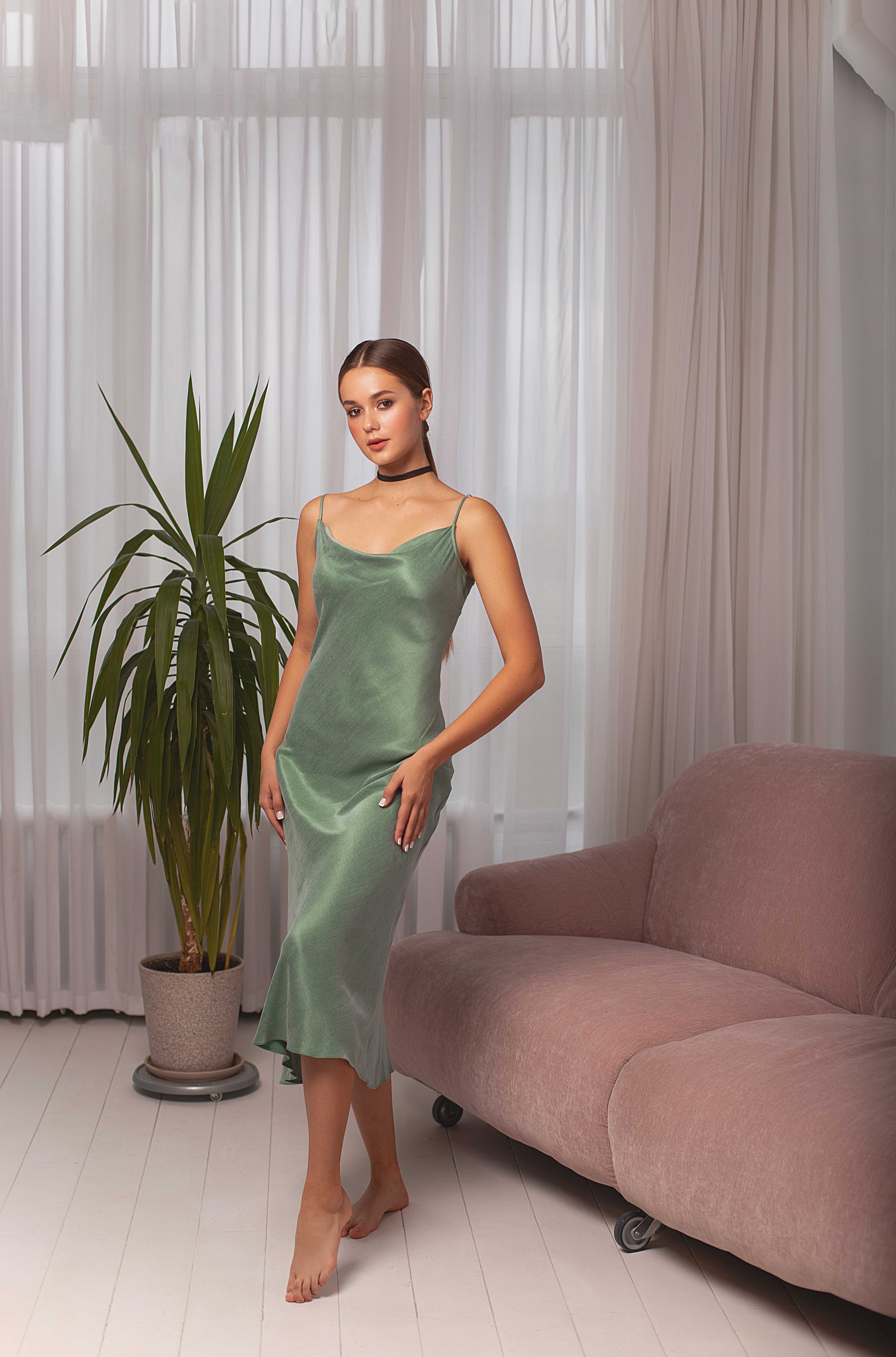 Платье-комбинация абсолютно универсальный вариант на все случаи жизни: для утонченных вечерних образов с объемными жакетами и на каждый день с бомберами, футболками и рубашками. • Полуприлегающий силуэт с небанальным кроем лифа и тонкие бретели с регулировкой подчеркивают хрупкость • Натуральная премиум-вискоза дарит ощущение легкости и прохлады, струится по коже и переливается мягким блеском • Идеальная посадка