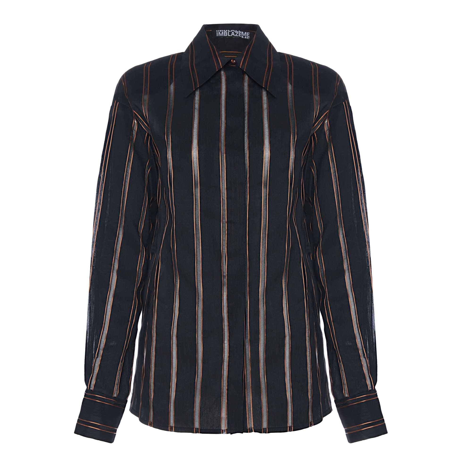 Блуза в чёрном цвете с медными полосками