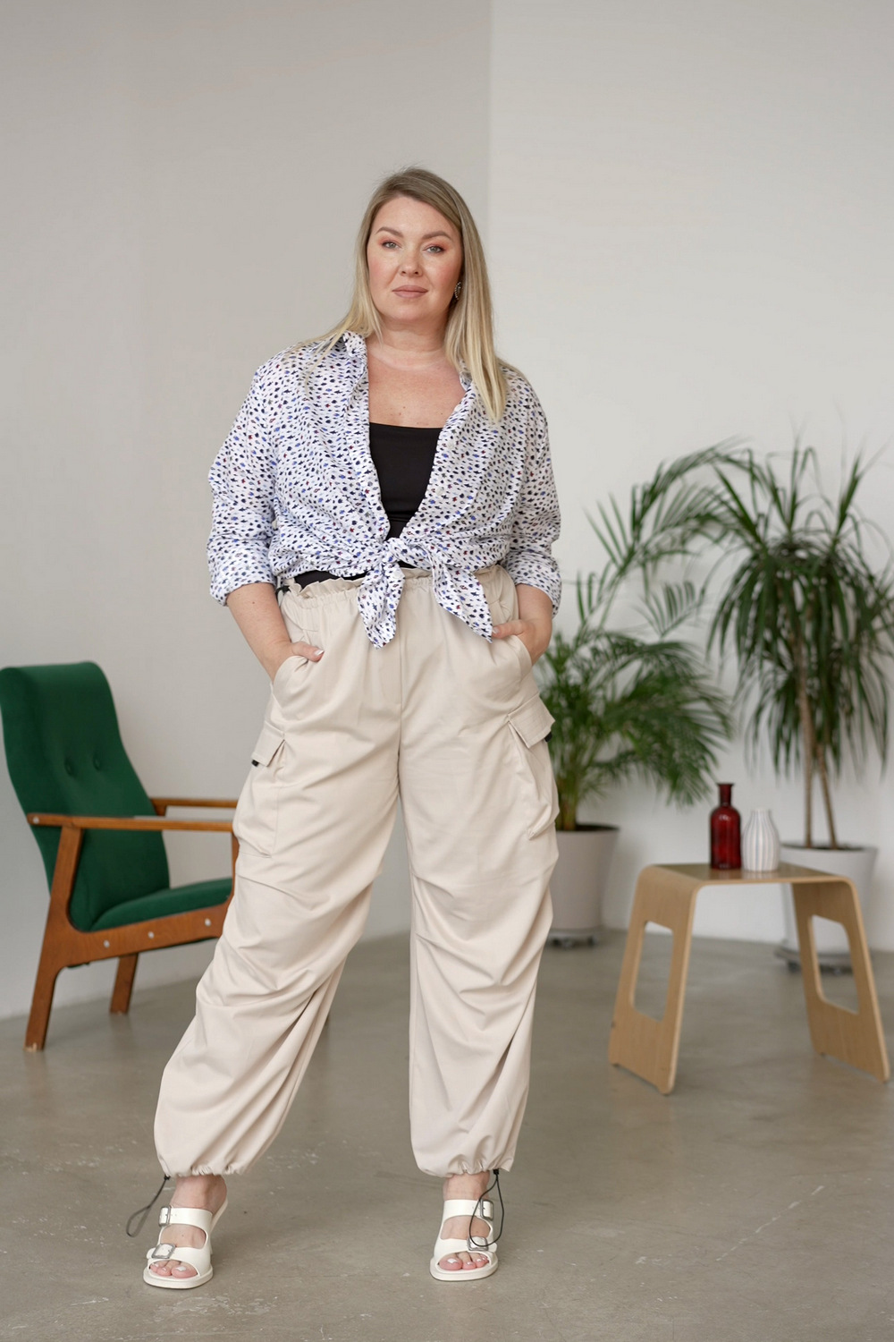 Легкая, свободная рубашка с игривым принтом-рыбками. Выполнена из плотного, немнущегося хлопка.