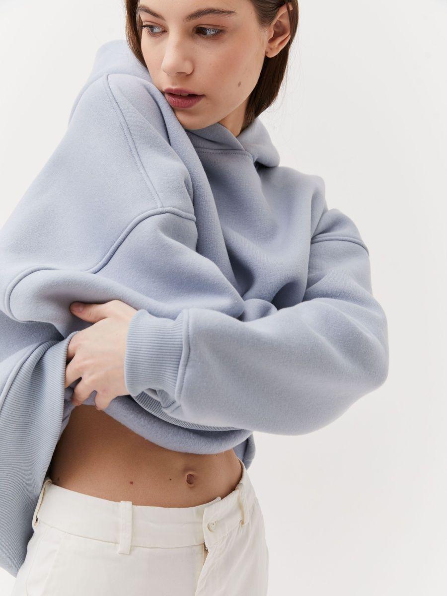 Худи из футера-трехнитки с начесом голубого цвета.