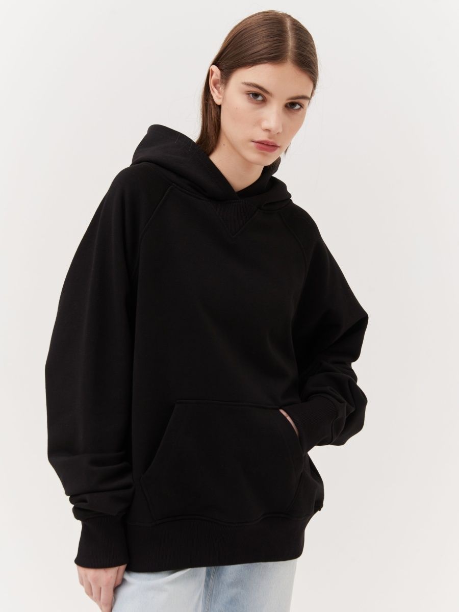 Худи из футера-трехнитки без начеса плотностью 400 черного цвета.