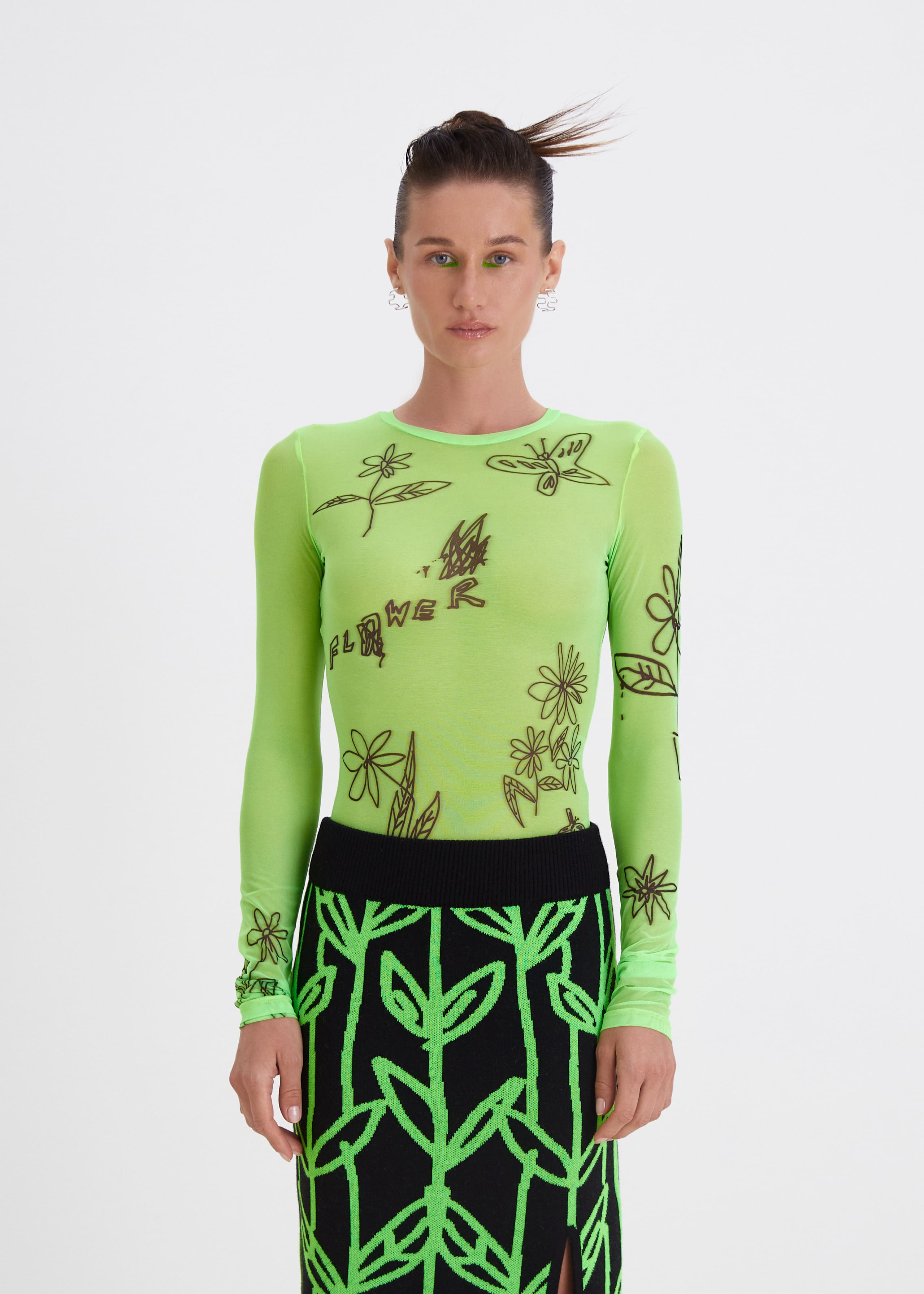 Боди из сетки "CAMOMILE FIELDS" салатового цвета