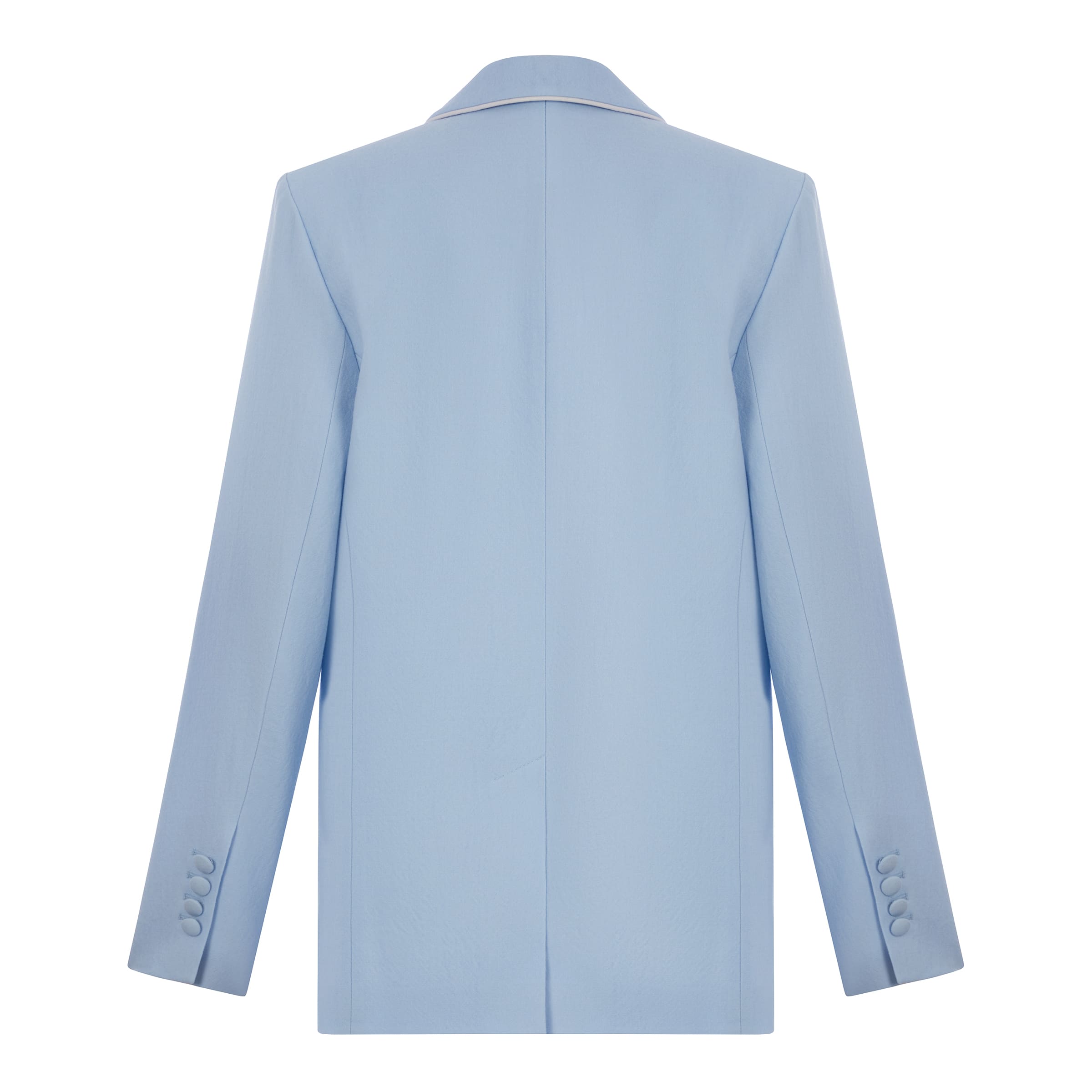 Жакет из 100% ланы в голубом цвете. Свободный крой, слегка спущенная линия плеч, шлица сзади.